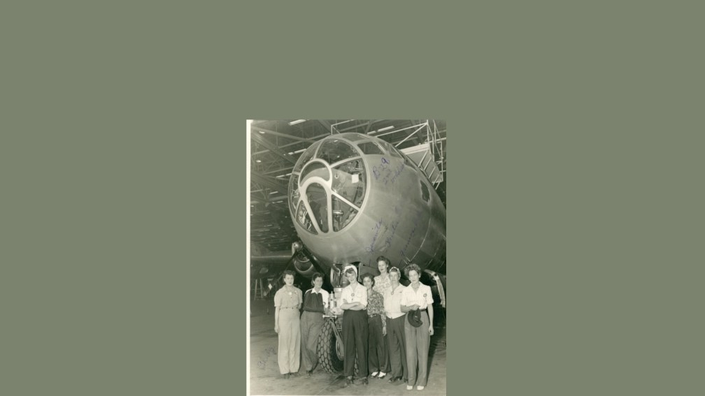 This is a picture of my maternal grandmother Rosalie. Here she is standing with Shirley, Juanita, and Frances, next to a B29 airplane, the sort she worked to rivet in the effort of WWII. The fact of her name, and that she was often referred to as Rosie, gives her poignant possession of the title of a literal Rosie the Riveter.