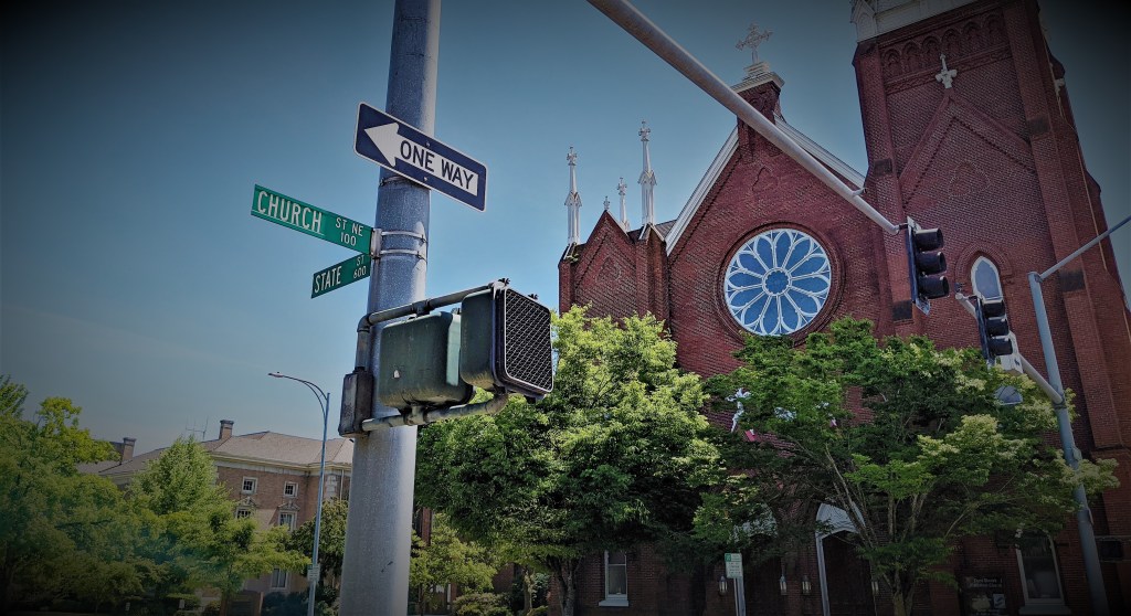 My spouse first drew my attention to the crossing. Perhaps he said something like, “The separation of church and state means these roads should be separated. They should run them parallel so they don’t intersect.” With a mix severity and levity, that’s something he would (and maybe did) say.